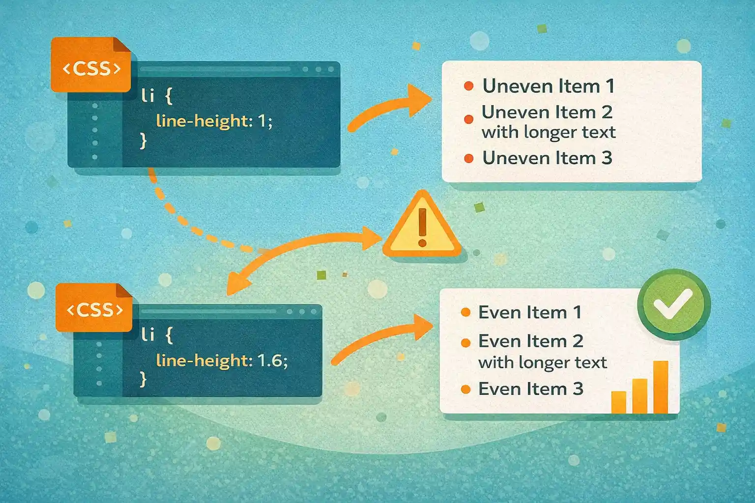 擬似要素でマーカーを作ると、複数行に折り返したときの見え方が重要になります。padding-left を確保しておけば折り返し行がマーカーの下に潜り込まず、文章が揃って読みやすくなります。position: absolute を使う場合は、li の padding-left とマーカーの幅が矛盾しないように設計することがポイントです。