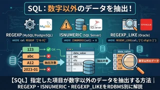 SQL 【SQL】指定した項目が数字以外のデータを抽出する方法|REGEXP・ISNUMERIC・REGEXP_LIKEをRDBMS別に解説