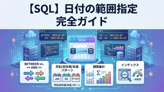 SQL 【SQL】日付の範囲指定完全ガイド|BETWEEN・>= AND <=・月別/四半期/年度パターン・期間集計・インデックスまで解説