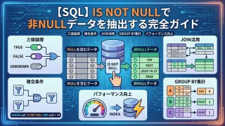 SQL 【SQL】NOT IN完全ガイド|基本構文・NULL問題の原因と対策・NOT EXISTS・LEFT JOIN比較・DELETE/UPDATE・複数列まで解説